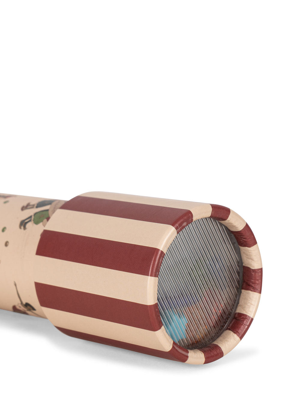Caleidoscopio mágico con perlas en su interior. Mira dentro y experimenta patrones y colores creados por los reflejos de los espejos y las piedras de colores. L: 19 cm x D: 4,5 cm. A partir de 3 años.