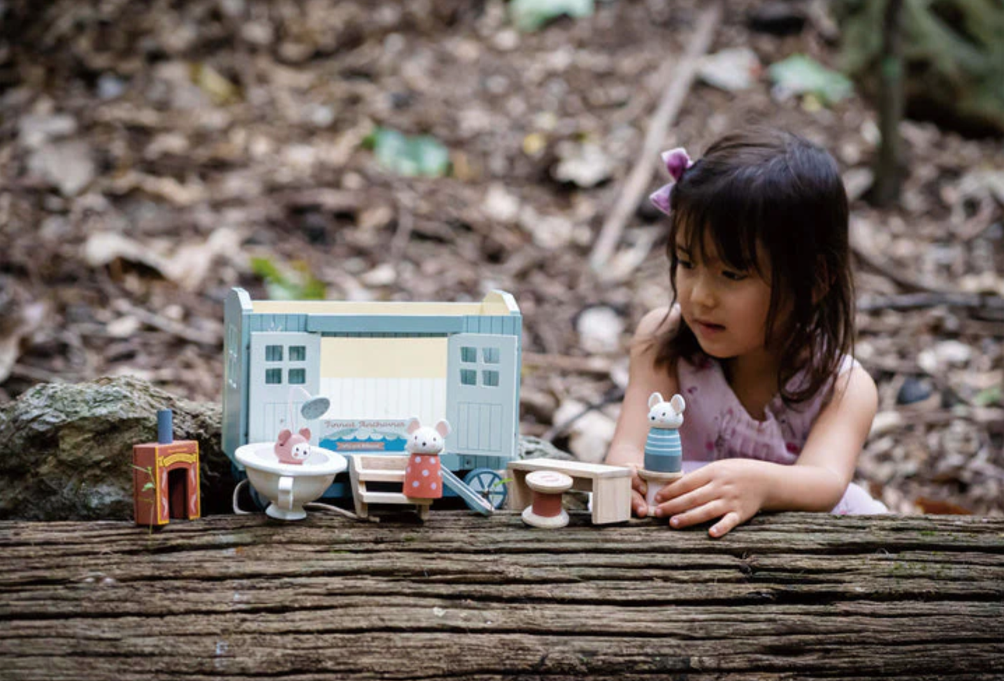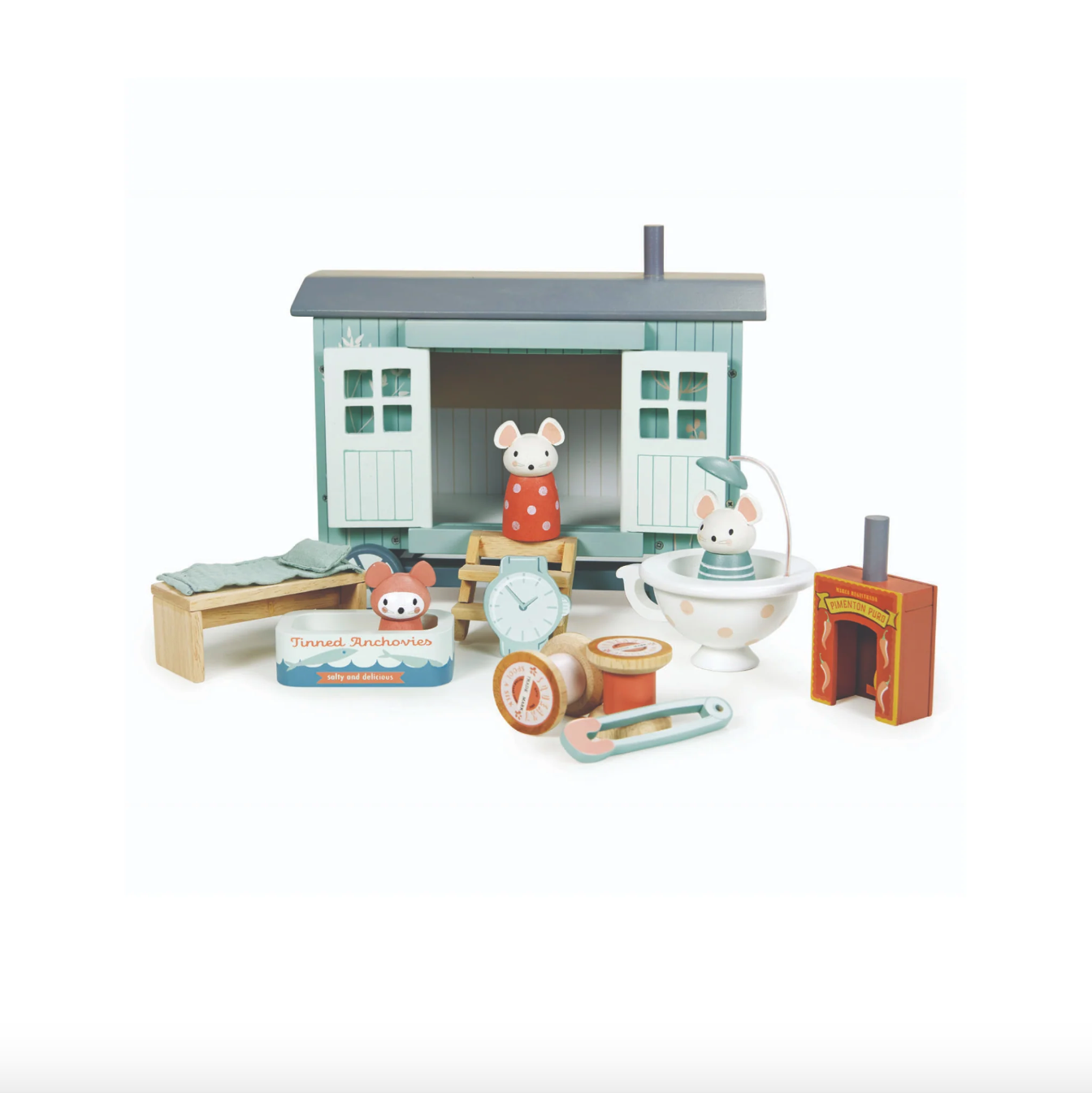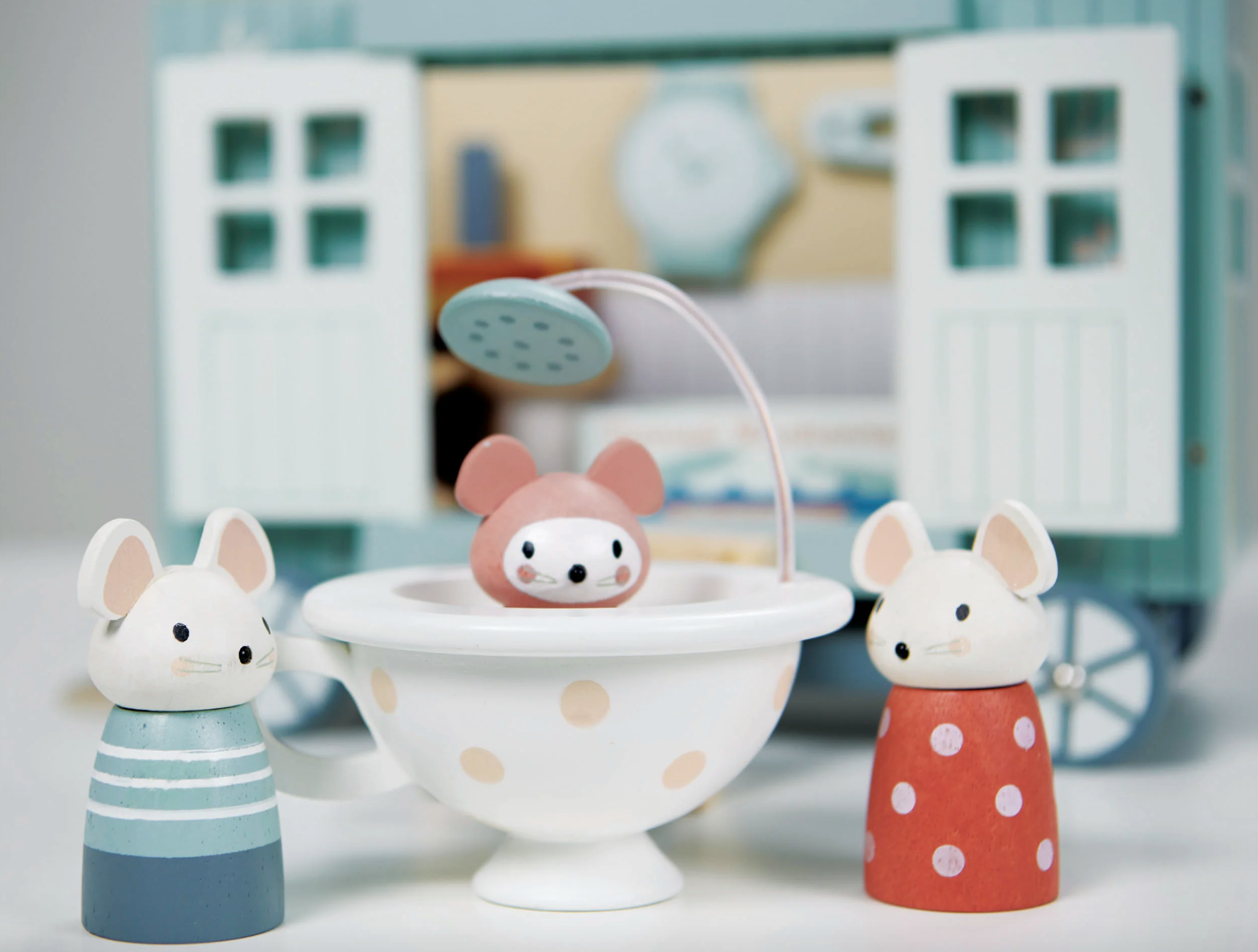 Ganador del premio de oro al mejor diseño de juguete para niños de 3 a 5 años. Estos traviesos ratones han reunido objetos reales para utilizarlos como muebles. Convirtiendo una tasa en ducha, una lata de sardinas en cuna, bobinas de hilo en sillas, una lata de pimentón en chimenea, un seguro en porta toallas y un reloj para ver la hora.