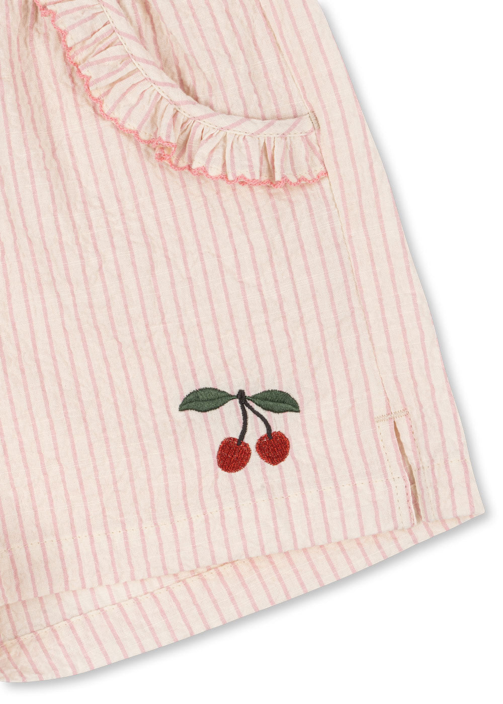 Conjunto de blusa y shorts de cereza Ellie. 98% algodón orgánico, 2% elastano.