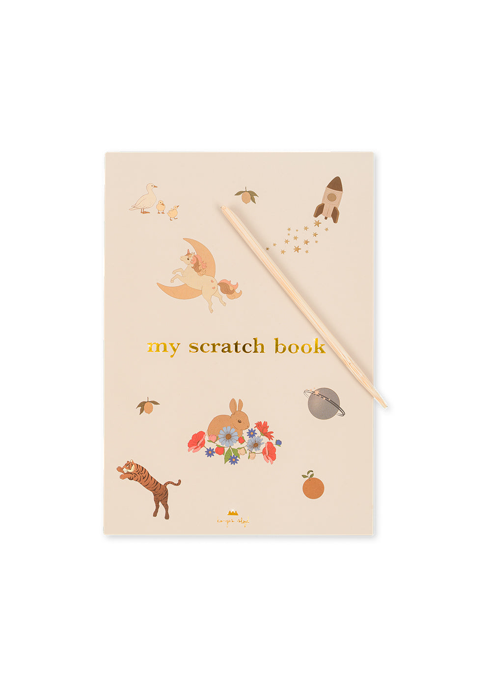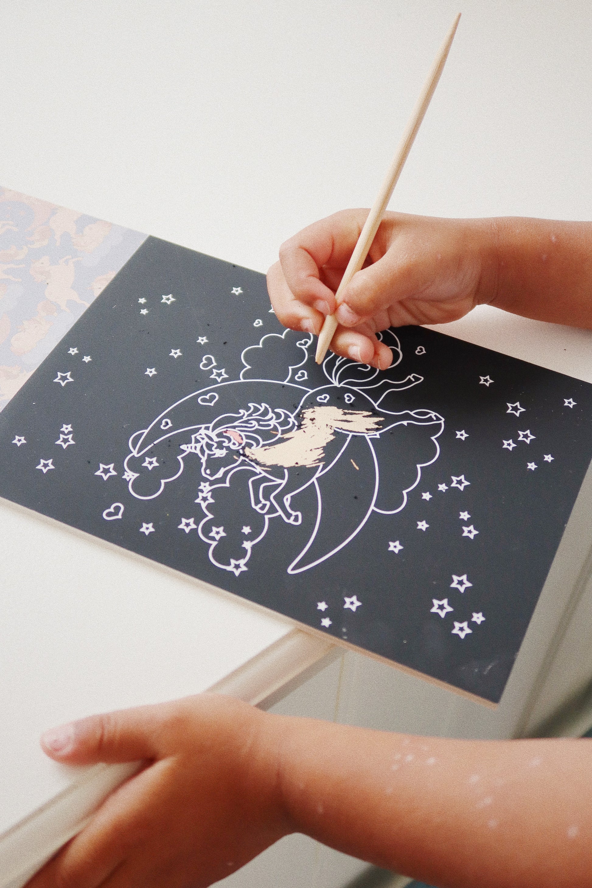 Set de libro para rascar que incluye un bolígrafo de bambú para rascar y 15 dibujos en formato A5.